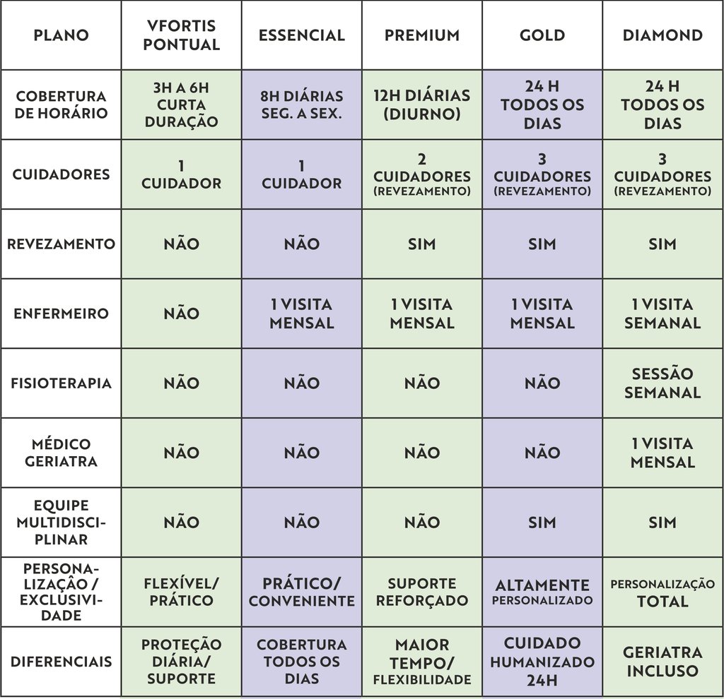 Indicado para idosos que necessitam de apoio nas atividades diárias e acompanhamento básico de saúde. Cobertura: 8 horas diárias, de segunda a sexta, com opção de finais de semana.